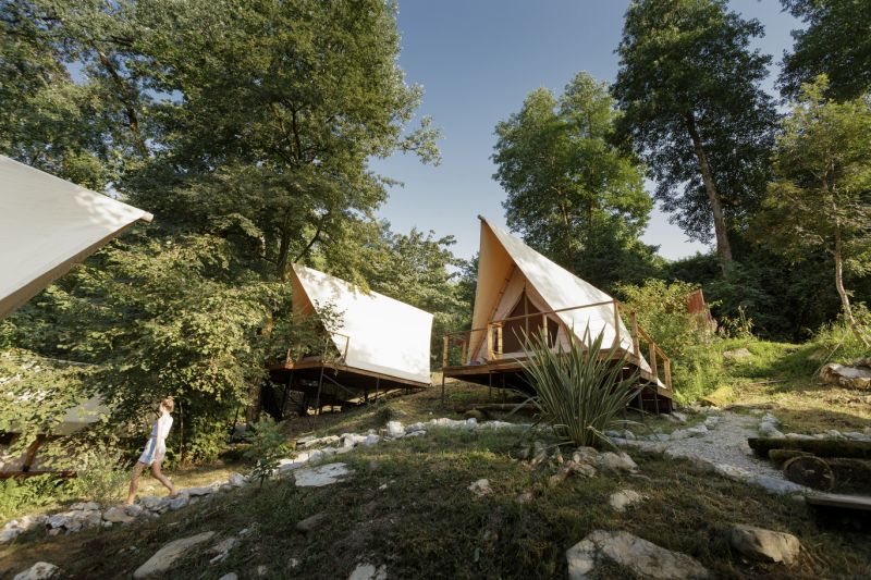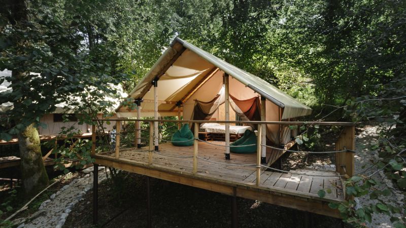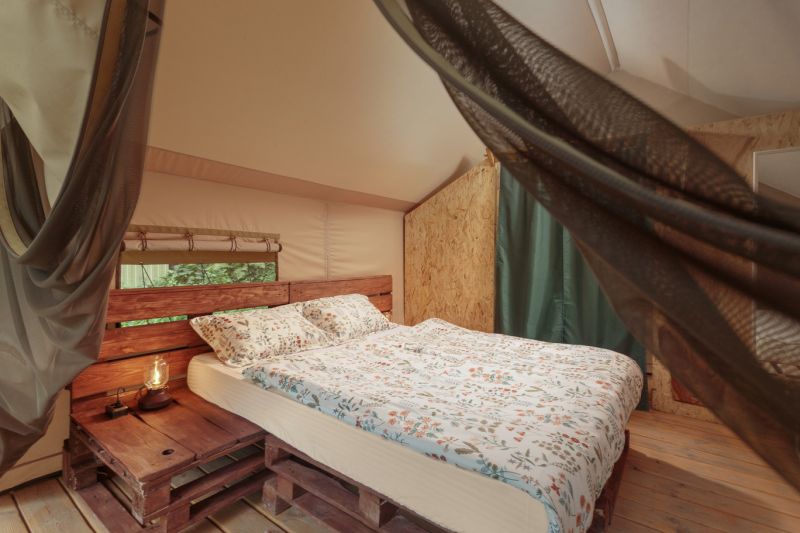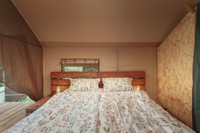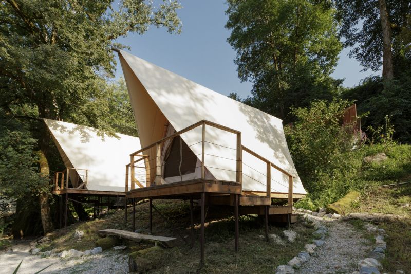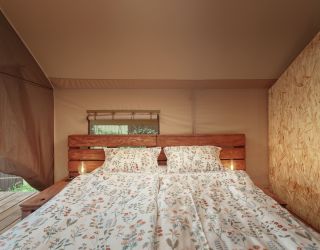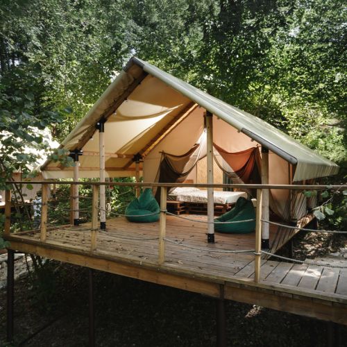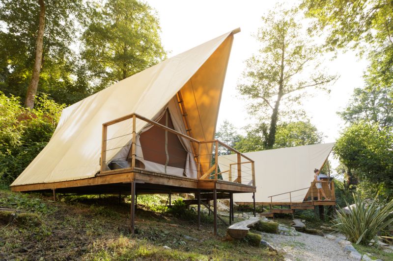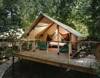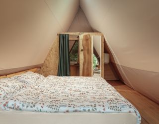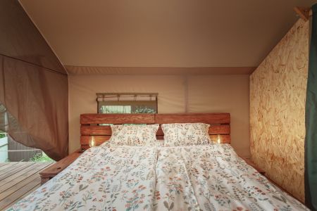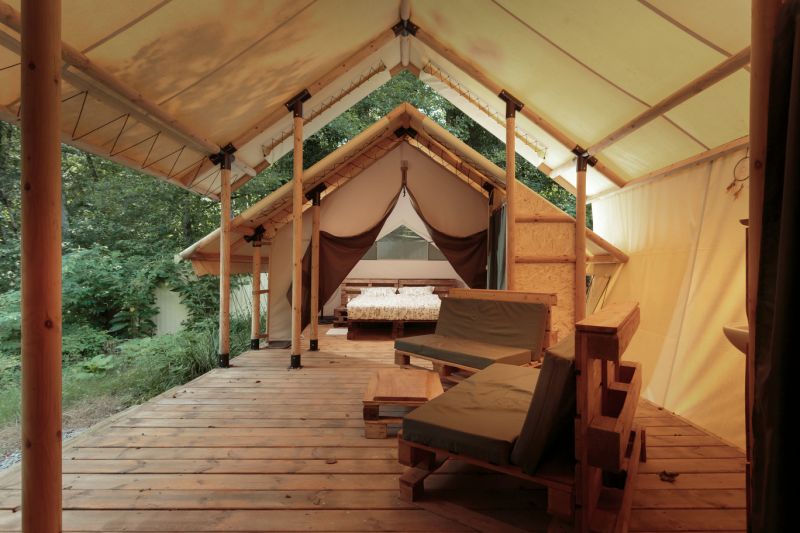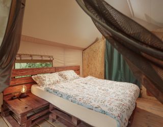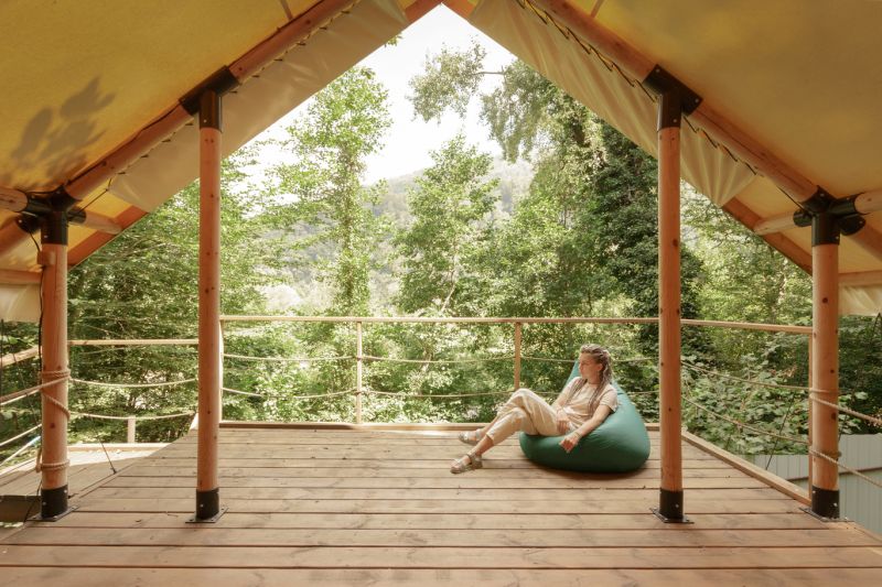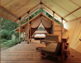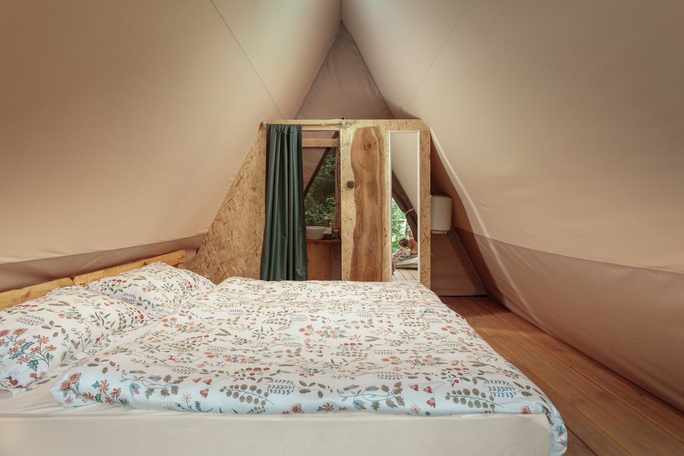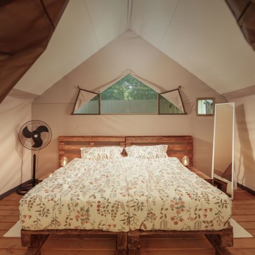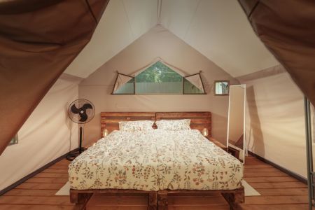 Инфраструктура глэмпинга состоит из 9 тент-хаусов трех категорий. В каждом Тент Хаусе есть двуспальная кровать, прикроватные тумбы, ночные лампы, зеркало, вентилятор. В ванной комнате собственный душ, туалет, раковина, зеркало, туалетные принадлежности, полотенца.