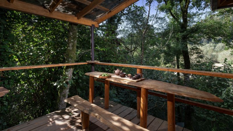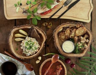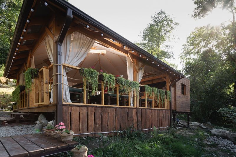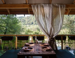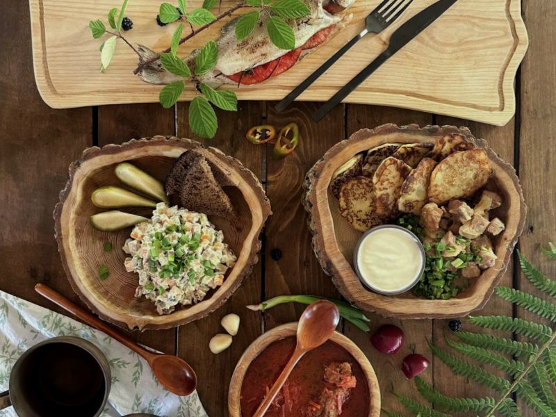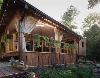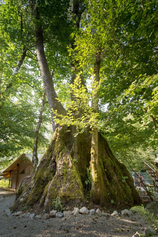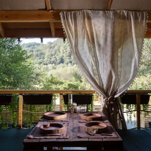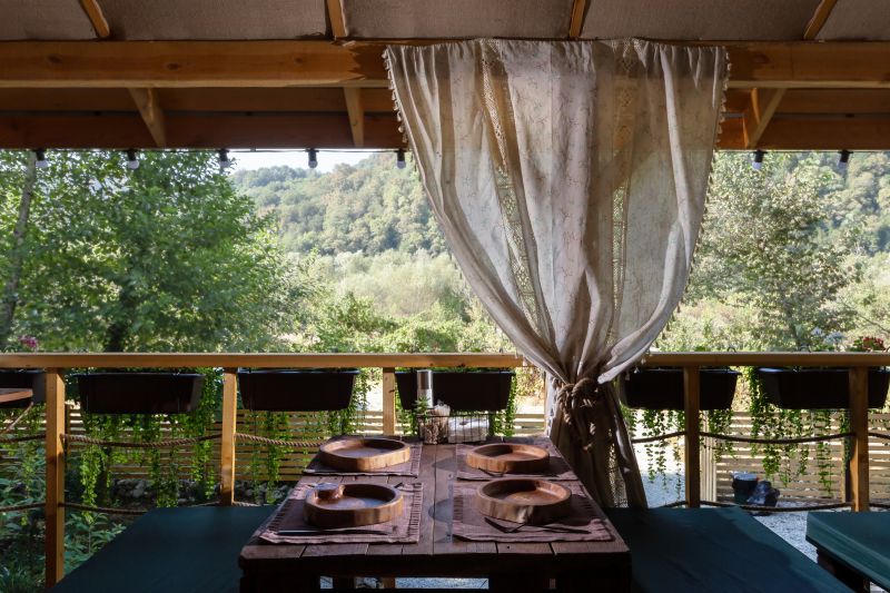 На территории есть баня, кострище и персональные террасы для йоги, а для гостей на автомобиле предоставляется парковка. Гости могут посетить ресторан славянской кухни Древо, где подают авторские блюда от шеф-повара приготовленные из локальных продуктов.